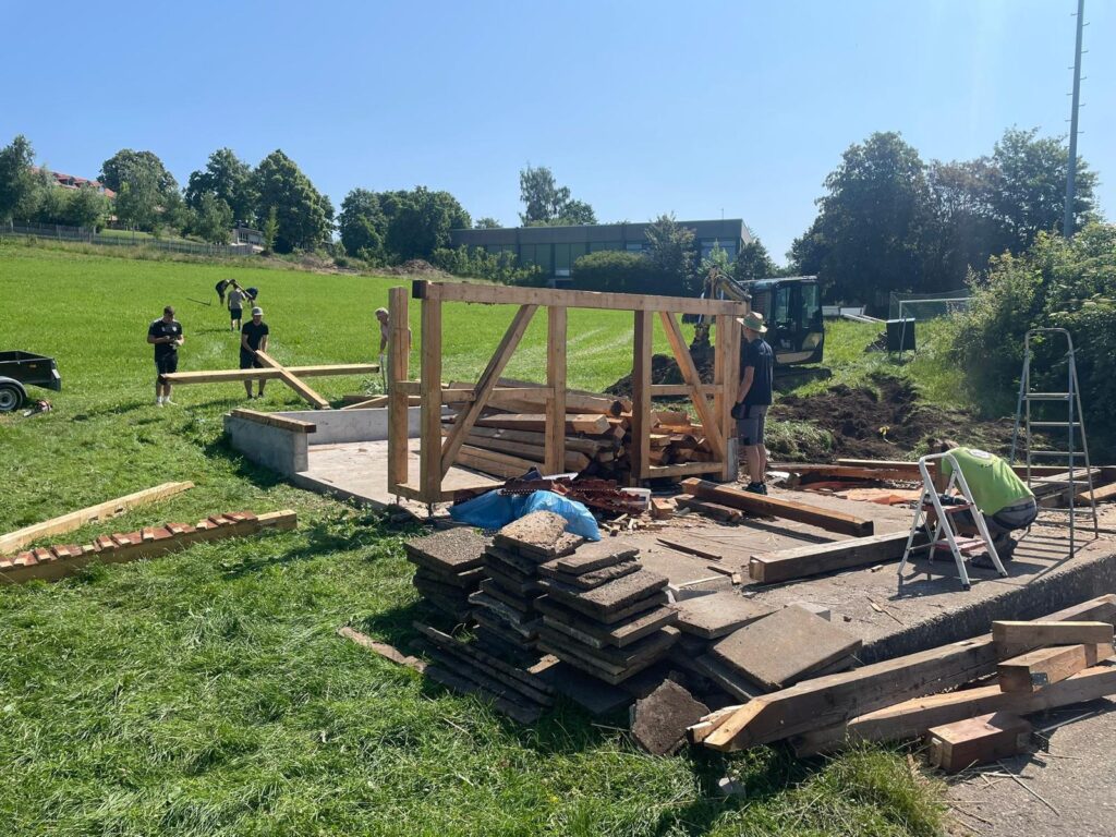 Ein Kickoff mit den am Rohbau beteiligten Firmen – allesamt bestehende Sponsoren oder im Ort bzw. der Region ansässige Unternehmen – Ende Mai hat uns nochmal wichtige Inputs für die finale Planung geliefert. Ohne diese Mitarbeit unserer Partner wäre die Umsetzung schwer denkbar – danke dafür!