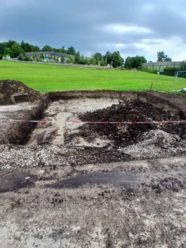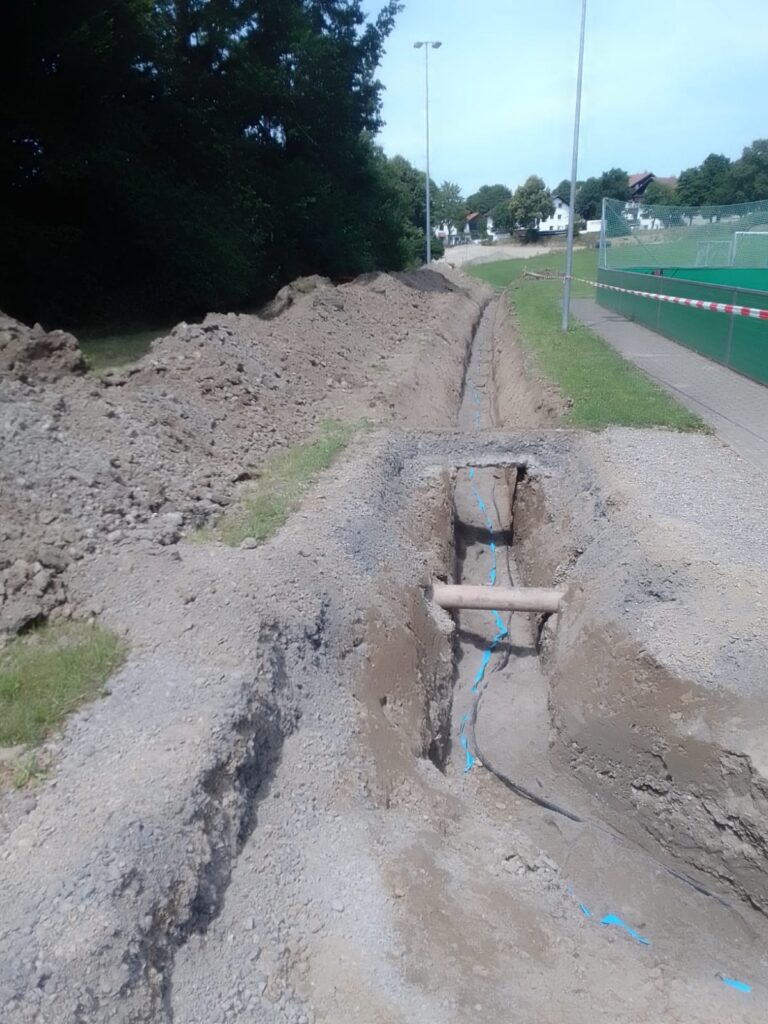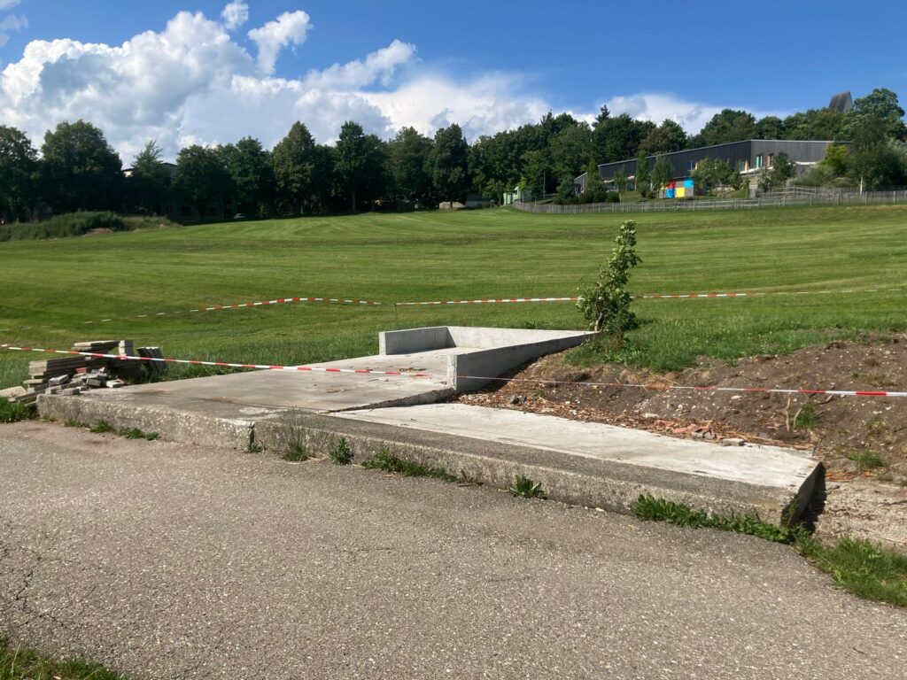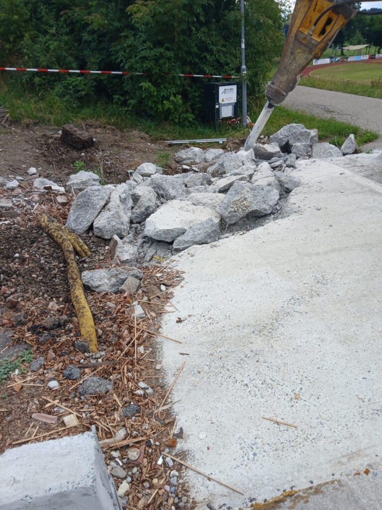 Diese Woche (KW29) wurde das Fundament weggemeißelt und abtransportiert. Der Tiefbau wurde gestartet und die Entwässerung in Form einer Hebeanlage in Richtung Schul-Gebäude wurde vorbereitet.